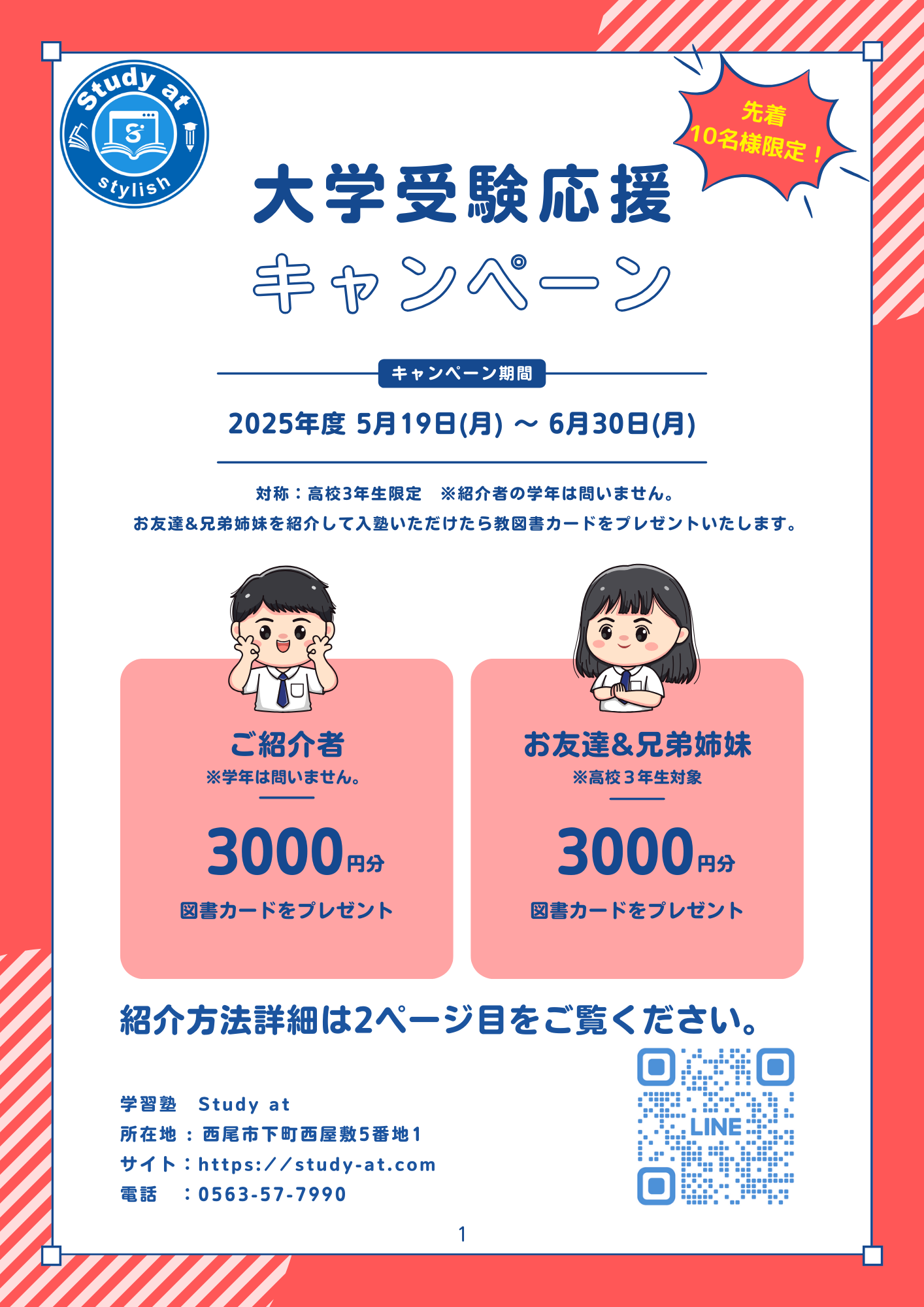2025-05-16当塾について大学受験応援キャンペーン実施します!!こんにちは。こんばんは。 学習塾 Study at塾長の柄澤です。 今回は、「大学受験応援キャンペーン」についてお知らせです。 下記の画像をご確認ください。